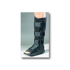 Lightweight, sturdy one-piece walker design with integrated strapping for full circumferential compression. Non-skid rocker sole and washable fiber leg wrap. Provides comfortable stability for ankle sprains, soft tissue injuries, stress and stable fractures of the foot. Fits either left or right foot.