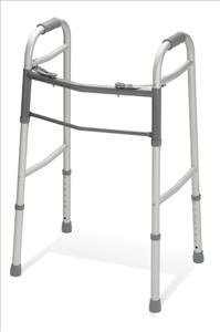 Medline MDS864104 WALKER,2 BUTTON,FOLDING,ADJ.1INADULT Physical Medicine/Rehabilitation Walkers WALKER,2 BUTTON,FOLDING,ADJ.1INADULT Deluxe Walker: Each Side Operates Independently To Provide Easy Movement Through Narrow Spaces And Greater Stability When Standing Up, While The Front Cross Braces Are Located Near Top Of Walker To Allow Full Stride. Sturdy 1" Aluminum Tubing Is Lightweight And Folds To A Slim 4 1/2" For Easy Transportation And Storage. Contoured Textured Latex Free Pvc Handgrips Provide Additional Patient Comfort. Width Inside Hand Grips: 18"; Width Inside Base Legs: 21"; Depth Opened At Base: 16". 300-Lb. Weight Capacity. Limited Lifetime Warranty On Frame. Six Month Warranty On Handgrips, Push Buttons, Feet, Wheels, Glide Caps, And Any Other "Wearable" Parts. Adult Walker, Height Adjustable 32"-39", 4/Cs.