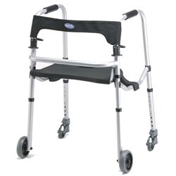 Invacare 6300-JRA WalkLite Walker This Junior size walker folds-up like a regular walker for easey transport and storage. The 6300-JRA folds so flat you can set behind the seat of an automobile. This WalkLite (TM) Walker revolutionized the world of walkers by addressing the needs of consumers at an affordable price. The new WalkLites will continue to feature all the benefits of the original WalkLite: a comfortable flip-up seat, durable front 5" fixed wheels, rear spring-loaded SureGlide (TM) brakes, a lightweight aluminum frame with flexible backrest and ergonomic dual-paddle folding mechanisms. Comes with Sure-Glide brakes on rear legs and 5" caster wheels in front.